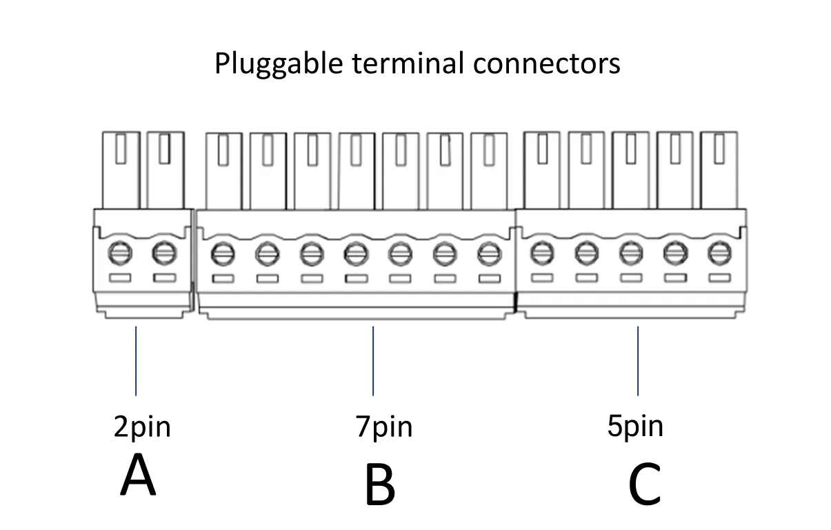 Note : Observe the orientation of A, B and C while screwing in the wires. The screw terminal should be facing the user.